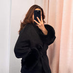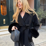 This belted wool-blend coat with faux fur cuffs is the perfect combination of sophistication and cozy luxury. Designed to keep you warm while elevating your style, this coat features a flattering wrap silhouette with a self-tie belt that cinches at the waist for a feminine shape. The plush faux fur cuffs add a glamorous touch, turning a classic coat into a chic statement piece. Whether you’re heading to the office, a dinner date, or a winter evening out, this coat transitions seamlessly from day to night. Its soft wool-blend fabric provides comfort and warmth, while the elegant design ensures timeless wear.